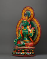 Green Tara Wooden Statue | Symbol of Compassion & Protection