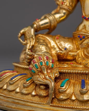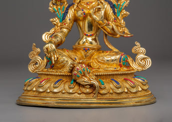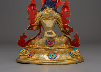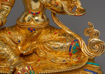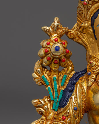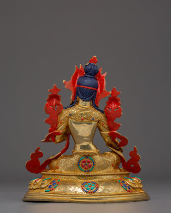 The Handmade Shyama Tara Sculpture showcases the skill and devotion of Tibetan artisans. Featuring Lapis Lazuli, Turquoise, and Coral stones, this statue is both a striking decorative element and a meaningful spiritual tool to invite Tara’s blessings of compassion and protection. Its gold plating and the materials used, make it a treasured piece of spiritual art that enhances the beauty and sacredness of any altar or meditation area.