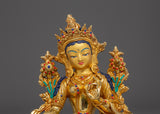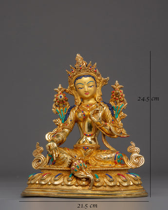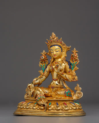 Handmade Shyama Tara Copper Sculpture | Tibetan Gold Plated Mother Tara Figurine