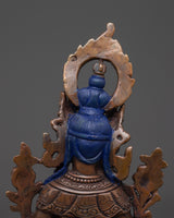 This Oxidized Copper Statue of Green Tara stands at 7.5”/19 cm in height with a 5.1”/13 cm wide base, weighing 0.90 kg. Expertly crafted from oxidized copper and adorned with detailed acrylic paintings, this piece reflects skilled craftsmanship and makes a graceful addition to personal altars, meditation spaces, or sacred collections.