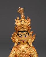 This gold-plated Buddhist Guru Rinpoche statue combines elegance with profound spiritual significance. Crafted from copper, it carries rich cultural and spiritual depth, making it a meaningful addition to any altar or meditation space. The radiant gold finish enhances its sacred presence, inviting Guru Rinpoche’s blessings of wisdom, protection, and guidance into your life. Beyond its striking beauty, this statue serves as a powerful tool to support and deepen your spiritual journey, helping you cultivate clarity, strength, and inner peace. Embrace this sacred icon to enrich your practice and foster a stronger connection to Tibetan Buddhist traditions.