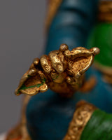 Intricate acrylic paintings that adorn the statue further accentuate its exquisite beauty by giving its features more depth and brightness. Devotees are encouraged to engage with Guru Rinpoche's teachings and blessings by the exquisite detail depicted in his tranquil expression and noble presence. The Copper Guru Rinpoche Statue is a powerful symbol of knowledge, compassion, and enlightenment that may be used in a shrine room or meditation area. It invites practitioners to develop a closer relationship with the enlightened master and to enhance their spiritual practice.