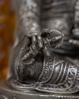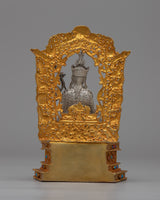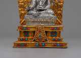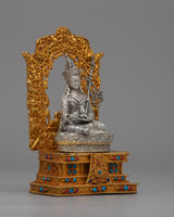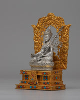 With its spiritual presence and painstaking handcrafted copper body, our Deva Guru Rinpoche Statue will illuminate your sacred area. This work of art, enhanced by beautiful 24k electro gold and electro silver plating, radiates spiritual brilliance and luxury. The god itself is plated in elaborate silver, signifying purity and enlightenment, while the throne is glistening with magnificent 24k gold, representing the transcendent power of compassion and knowledge.