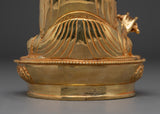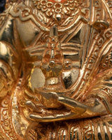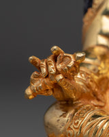 The Dusum Sangye Guru Rinpoche Statue, handcrafted with painstaking detail, represents Guru Rinpoche's awakened wisdom and compassion, as well as his role in introducing Tibetan Buddhism to Tibet. The use of copper and gold plating ensures beauty, with the golden finish adding to the statue's spiritual importance. This precious monument is a continual reminder of Guru Rinpoche's teachings, bringing deep blessings and spiritual understanding to all who meditate or pray before it.