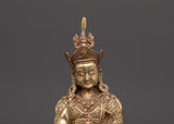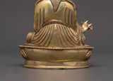 Guru Rinpoche, revered as the "Second Buddha," is well-known in Tibetan Buddhism for introducing Vajrayana teachings to Tibet. This statue represents him holding a vajra in one hand and a skull cup in the other, with a khatvanga resting on his shoulder, symbolizing mastery of the tantric path. The lotus base adds to the piece's heavenly aura, establishing it as a treasured symbol of knowledge, protection, and transformation.