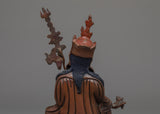 This item is sculpted from quality oxidized copper, giving it a particular old appearance and representing the timeless wisdom Guru Rinpoche contributed to the Buddhist community. His priestly attire and caring expression are accentuated by the fine details painted in gold and acrylic. Its 0.620 kg weight, small size, and prominent presence make it perfect for meditation areas, personal altars, or as the centerpiece of a collection of spiritual artifacts.