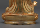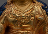 The Guru Rinpoche statue represents the majestic copper body plated with 24k gold in a beautiful figure. He represents his power to defeat negative forces against him by holding the khatvanga in one hand and by holding the vajra on the other hand he shows his indestructible and compassionate nature.