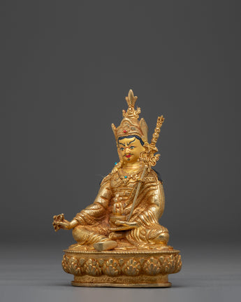 Handmade Himalayan Golden Guru Rinpoche Art for Dharma Decor