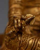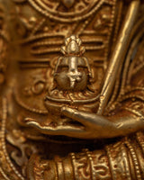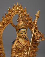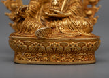 A magnificent depiction of the respected Guru Rinpoche, also called Padmasambhava, who is very important in Tibetan Buddhism, is the machine-made Guru Rinpoche Statue. This exquisitely crafted statue, with its bright 24k gold plating and copper body, radiates spiritual strength and divinity.