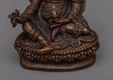 The Guru Rinpoche Mini Statue is machine-made from copper, ensuring consistent craftsmanship and detail. Despite its small size, measuring 8.5cm in height, this statue captures the essence of Guru Rinpoche's presence. It is designed to be portable, allowing you to carry the spiritual energy and blessings of Guru Rinpoche with you wherever you go. The copper material adds a touch of elegance and durability to the statue, making it a cherished item for personal devotion or as a gift for fellow practitioners.