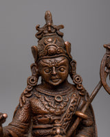 Take a look at the magnificent 7-cm-tall Padmasambhava Guru Rinpoche Statue, which is made of oxidized copper. The depth of Guru Rinpoche's enlightenment and the spiritual richness of his teachings are embodied in this statue of the famed Tibetan Buddhist guru.