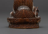 This small statue is ideal for meditation rooms and altar decor, serving as a potent symbol of protection and enlightenment. Its traditional Tibetan design and intricate detailing make it a cherished heirloom or a spiritual gift for personal devotion. Ideal for people looking to engage with Tibetan Buddhist teachings. The statue serves as a reminder of his teachings and blessings, which improves spiritual focus, protection, and inner change during meditation and ceremonies.