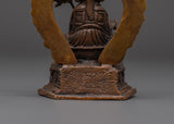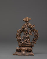 Each statue is hand-carved with meticulous care, reflecting the profound spiritual significance of Guru Rinpoche. The oxidized copper adds a unique touch, making it not only a powerful spiritual tool but also a piece of Tibetan art. Whether used for meditation or displayed as a focal point in your home, this Padmasambhava statue brings a sense of peace, protection, and spiritual energy.