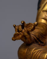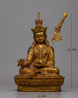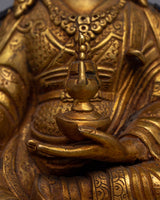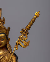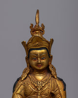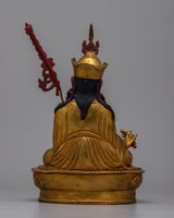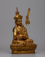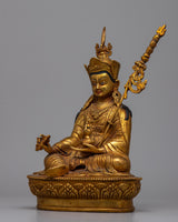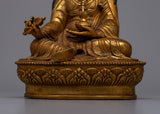 The statue's tranquil look and flowing robes convey Guru Rinpoche's wisdom and compassion. The gold plating not only improves its appearance but also represents purity and enlightenment, making it a sacred match to any spiritual area or altar.