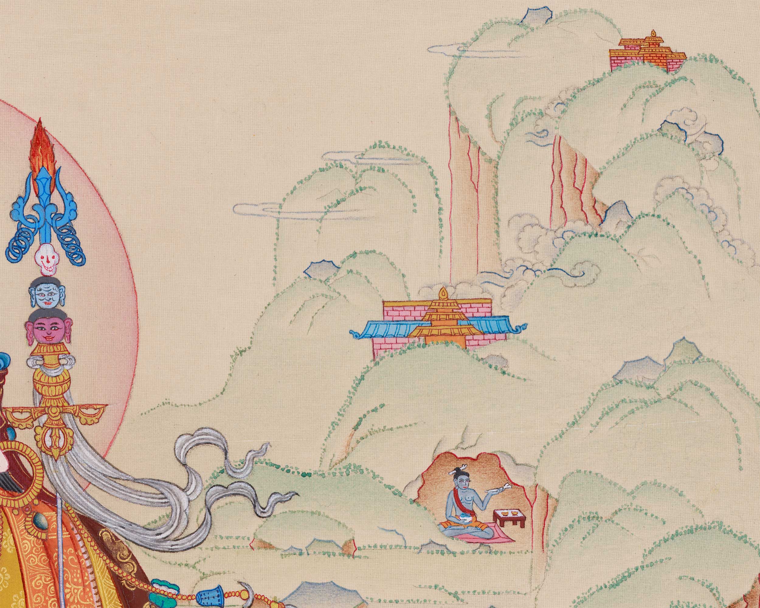 Original Hand-Painted Tibetan Guru Rinpoche Artwork | Embodiment of Spiritual Protection and Wisdom