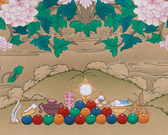 As you requested consecrations/blessings, we can take the thangka to nearby monasteries/Rinpoches from the Boudha Stupa. We kindly ask that you contribute $50 to the monasteries for these blessing/consecration services.