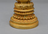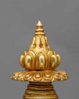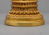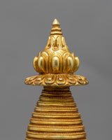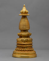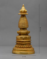 This Stupa is handcrafted with unique details and plated with gold for Nourishment and Restraint in your life.