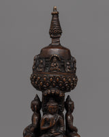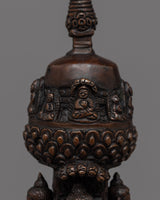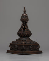 28"cm Tibetan Buddhist Stupa | Exquisite Handmade Oxidized Copper Pagoda Chaitya Statue