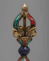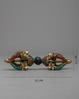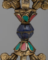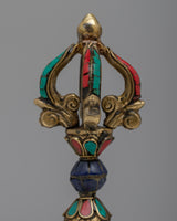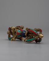 This Vajra Dorje, adorned with intricate inlays of Artificial Stone(turquoise, Lapis Lazuli, and coral), reflects the vibrancy of Tibetan culture. These stones are more than just ornaments; they are powerful symbols in Tibetan Buddhism, representing wisdom and compassion, both of which are necessary for enlightenment.