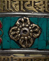 This prayer wheel is a powerful reminder of the importance of dedication and the connectivity of all beings, whether it is used for private meditation or as a decorative element in a home shrine or temple. It is a treasured item for anyone hoping to develop inner harmony and tranquility as well as enhance their spiritual practice because of its enduring beauty and spiritual meaning.
