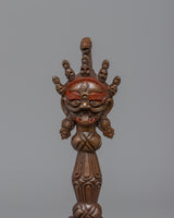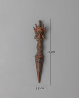 Presenting our exquisite 13-cm-tall Dorje Phurba, which is painstakingly fashioned by hand on a oxidized copper body. This magnificent Phurba, which represents strength, defense, and spiritual development, embodies the holy force of the Dorje.