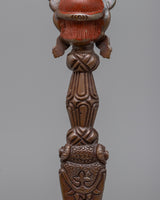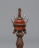 Our Dorje Phurba is handcrafted with great care and attention to detail, showcasing the ritual implement's ageless beauty and significance. It is a powerful symbol of spiritual strength and enlightenment that can be carried as a protective amulet, employed in meditation activities, or shown as a focal point in your holy space.