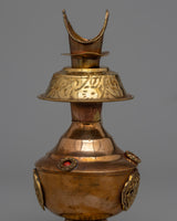 This vase, which appeals to both practitioners and enthusiasts, preserves the spiritual significance of Tibetan traditions despite not being handcrafted. The use of brass and copper in your design brings a sense of artistic appeal and cultural richness, skillfully fusing modernity and tradition.