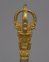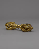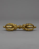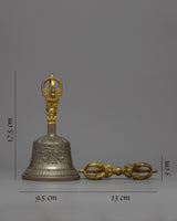 Enhance your spiritual practice with our Bronze Vajra and Bell Set, a harmonious blend of artistry and symbolism. This set is made of solid bronze and features exquisite 24k gold-plated accents on the bell and vajra handles.
