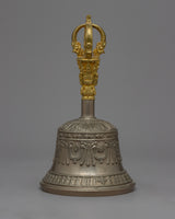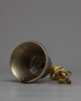 When rung, the bell's 17.5cm height produces a resonant and soothing sound, symbolizing the wisdom aspect of Buddhist teachings. Its meticulously designed handle gleams with a golden touch, adding a touch of opulence to your rituals.