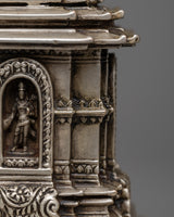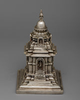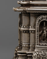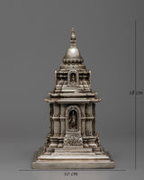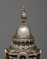 This stupa, enhanced by a delicate electro silver plating, is a striking complement to any spiritual setting because of its beauty and grace. Measuring 18 centimeters, it is a profound emblem of inner serenity and enlightenment that encourages introspection. The Buddha Relic Stupa is an everlasting reminder of the profound teachings of the Buddha and the path towards enlightenment, whether it is exhibited in your house, place of meditation, or shrine.