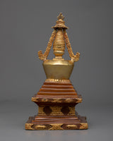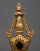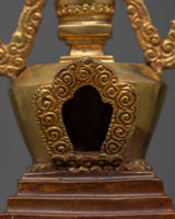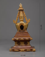 Behold the resplendent Buddha Stupa Statue, a testament to exquisite craftsmanship and spiritual devotion. Handcrafted with precision on a Copper body and adorned with the radiant glow of 24k gold gilding, this statue stands tall at 23cm in height.