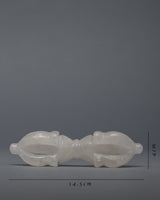 This Vajra is a one-of-a-kind and lovely piece, handcrafted from crystal stone for a stunning and radiant appearance. The Vajra is a Tibetan Buddhist ritual object that represents the indestructible and diamond-like nature of the enlightened mind. The use of crystal stone in its creation adds a level of clarity and purity to its symbolic significance. The Vajra is a powerful tool for meditation and spiritual practice, assisting in mental focus and cultivating a deeper sense of awareness and inner peace.