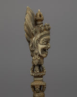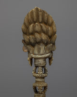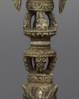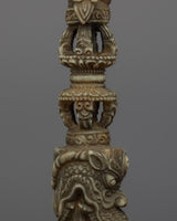 We have masterfully hand-carved the phurba Tibetan dagger in the traditional Himalayan style. The Large Bone Head Phurba is exquisitely and elaborately carved from buffalo bone(Ethically sourced buffalo bone) and is decorated with conventional designs that represent the deity's strength and wisdom. This sacred object is an exquisite addition to any spiritual practice or home décor collection since every curve and line shows the artist's devotion and labor of love. Feel the deity's aura as you connect with their heavenly essence as you proudly and reverently display the Huge Boneheaded Phurba.
