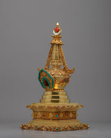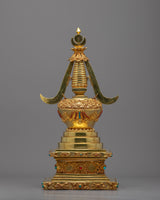 24k Gold plated Buddhist Chorten Stupa | Traditional Himalayan Art