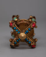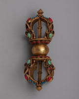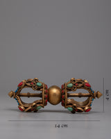 Each intricate detail of the Vajra, which has been meticulously crafted, reflects the rich symbolism and significance found in Buddhist tradition. The 24K gold plating enhances the spiritual experience of using this holy instrument by adding a hint of luxury and reverence.