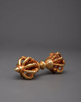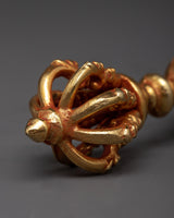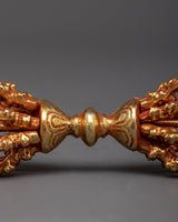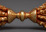 The Buddhist Copper Vajra is a monument to spiritual symbolism and exquisite workmanship. This exquisitely created Vajra has a copper body and is electroplated in 24k gold, which adds a dazzling sheen that evokes heavenly light.