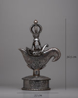 The Buddhist Curved Knife, or Kartika as it is often called, is a remarkable example of traditional craftsmanship meticulously made on an iron body. This knife, which stands 36.5 cm tall, is a testament to the artistry and accuracy of its creators. The curving blade shape captures Buddhist symbolism's complex and distinctive traditions, while the iron body guarantees strength and longevity. In addition to being a useful weapon, the Kartika knife is a profound symbol employed in many rites and spiritual practices.