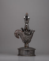The Buddhist Curved Knife has a stand that is expressly made to allow it to be exhibited when not used. It becomes an important ornamental item that can be displayed in a meditation chamber, shrine, or other holy artifact collections when the stand is added. With its traditional style and curved blade, the Kartika knife has great spiritual meaning, frequently signifying overcoming ignorance and achieving enlightenment. This handcrafted iron knife is a potent reminder of spiritual commitment and the rich legacy of Buddhist traditions, especially when paired with its stand.