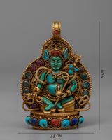 Enter the realm of divine favor with the Buddhist Deity Locket, a sign of spiritual devotion and protection. This locket emanates timeless elegance and reverence, crafted with painstaking detail on silver and embellished with genuine gemstones such as lapis lazuli, turquoise, coral, each vibrating with its own distinct energy. Standing 5cm tall, it provides a concrete connection to the spiritual realm.