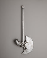 The Buddhist Iron Axe is a magnificent example of artisanship combined with religious meaning. This iron axe, which was carefully made by hand, captures the spirit of Buddhist customs. Standing 48 cm tall, its massive presence draws attention, and its iron body radiates durability and strength.