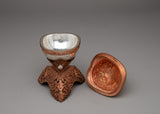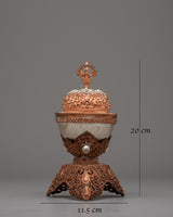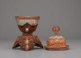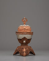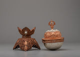 Take a trip of spiritual awe with our Buddhist Kapala Skull Set, which is painstakingly created on a copper body and embellished with pure silver. This combination, which includes a ritual skull and a Kapala cup, captures the spiritual spirit of Buddhist customs and ceremonies. Every component bears witness to the perfect union of traditional artistry and spiritual devotion.