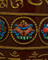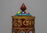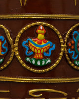 Buddhist Mantra Prayer Wheel | Crafted in Copper with Acrylic Painting for Sacred Devotion