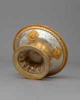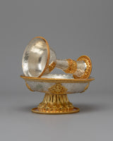 Introducing the Serkyem for Buddhist Offering: A remarkable piece, meticulously handcrafted with a copper body and adorned with the richness of 24k gold and silver plating. This Serkyem set is a true masterpiece, embodying the essence of devotion, tradition, and opulence.