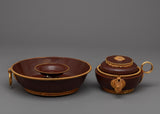 Elevate your sacred rituals with the magnificent Dzambhala Buddhist Water Offering Set, which is expertly created from oxidized copper and embellished with sumptuous 24k electro gold plating. This set includes three key components: a water pot, a large plate-type bowl, and one tiny bowl, all of which are precisely crafted to enhance the holiness of your ceremonies.