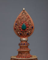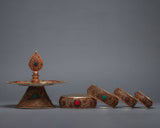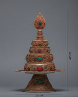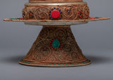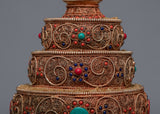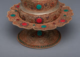 The Circle Mandala Set is a lovely piece of handcrafted art with a copper body. The set is made of 24K gold plating and has intricately embedded gemstones. The mandala set's circular design creates a beautiful and harmonious visual display that is sure to catch the attention of anyone who sees it. This set's attention to detail is truly remarkable, making it a valuable addition to any collection.