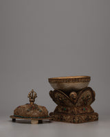 Copper Crafted Kapala Set | 24K Gold and Silver Plating for Luxurious Sacred Offerings