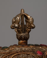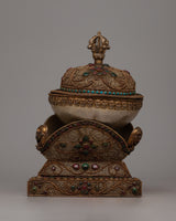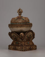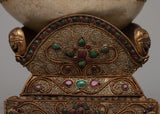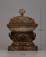 This Kapala Set, weighing a total of 2.06 kg, is a focal point for ritual ceremonies and meditation activities because it radiates elegance and substance. The set has a sense of religious magnificence because of the gemstones' incorporation, which provides a touch of opulence and vitality. It is a powerful reminder of the interconnection of all beings, whether it is on display in a shrine or utilized in ceremonial offerings.