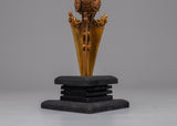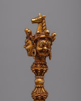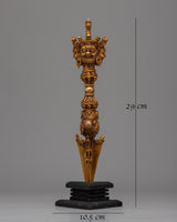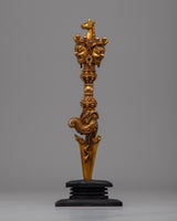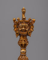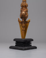 With our carefully created Copper Dagger, which has a solid copper body and is embellished with 24k gold electro plating, you can uncover the mysteries of age-old rituals. This magnificent sculpture evokes centuries-old customs of spiritual practice and protection with its aura of power and reverence. The wooden stand that is included with the dagger, also called a phurba, enhances its appeal and offers an amazing example of handiwork.