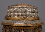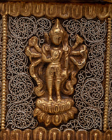 A masterwork of artistry, the Copper Dharma Dhatu Statue is painstakingly carved on a Copper body and embellished with both silver and 24k gold electroplating. The Dharma Dhatu, revered as a sacred symbol in Buddhist tradition, stands for the essence of enlightenment and the underlying nature of reality.