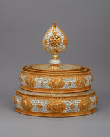 The Copper Offering Mandala Set will elevate your spiritual practice and add a touch of opulence to your sacred space. This set, meticulously crafted, embodies the ideal marriage of artistry and spirituality.